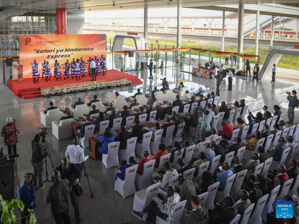 A celebration to mark eight years of seamless operation of the Chinese-built Mombasa-Nairobi Standard Gauge Railway (SGR) in Kenya is held in Nairobi, Kenya, June 10, 2025. (Xinhua/Li Yahui)