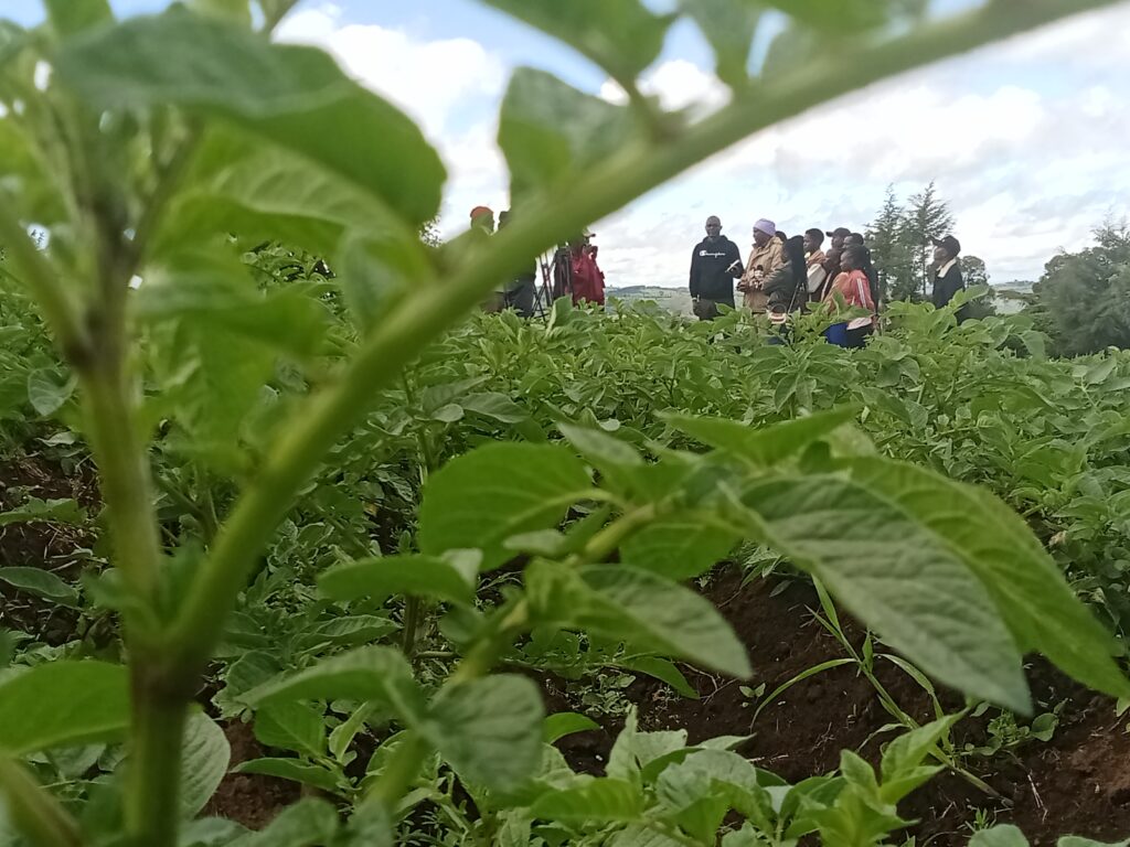 And at an edge of a hill, Ernest Thome a farmer is surrounded by more than a dozen Agriculture students from local learning institutions for an internship in his 50 acres land which has been turned into a model for climate smart farming.