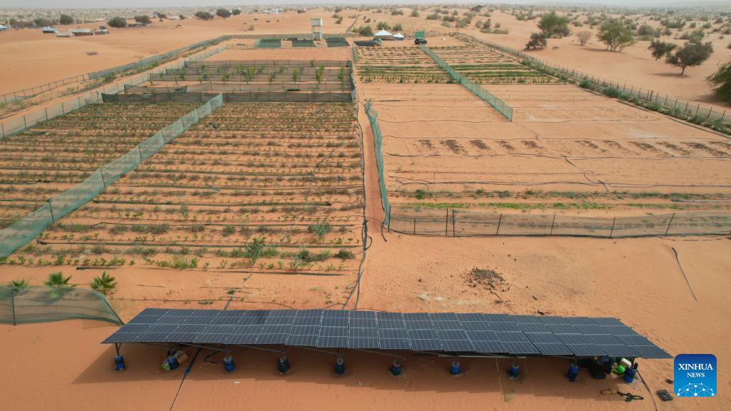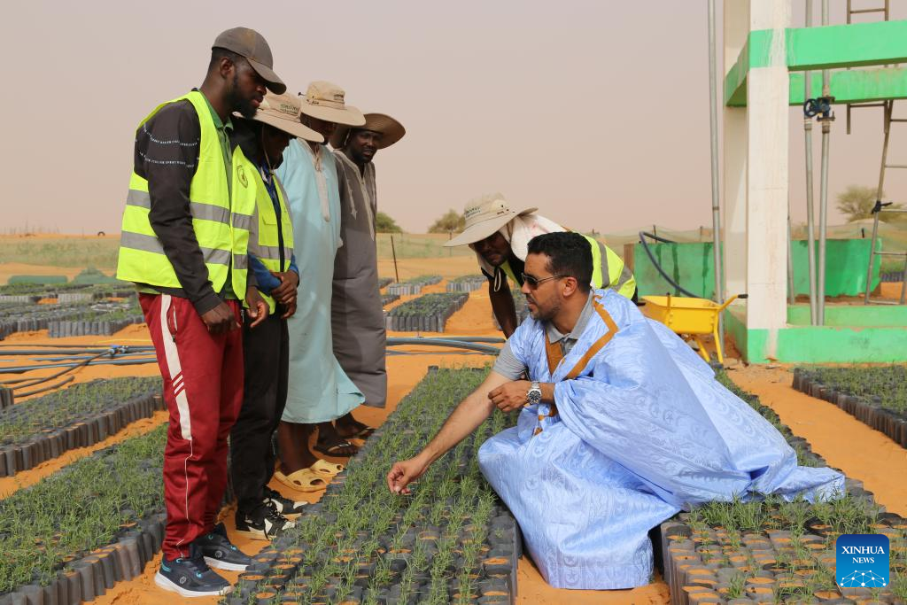 NOUAKCHOTT, June 3 (Xinhua) — Under the scorching sun, rows of drip irrigation lines lay neatly across a stretch of sandy fields in Bir El Barka, a village in Trarza region, western Mauritania. Tender green vegetable seedlings sprout from the yellow sand.